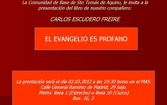 D. Carlos Osoro, Obispo titular de la diócesis de Madrid Estimado D. Carlos, El consejo y los miembros de la comunidad Santo Tomás [...]