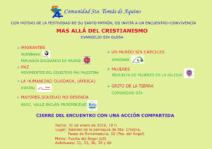 Nuestra fe, la de las comuneras y comuneros de Santo Tomas de Aquino, se identifica sobre todo con el mensaje de Jesús de Nazaret y los valores que en él se identifican nos parecen pilares sobre los que, ahora más que nunca, debemos apoyarnos para poder seguir manteniendo la Esperanza del Evangelio.